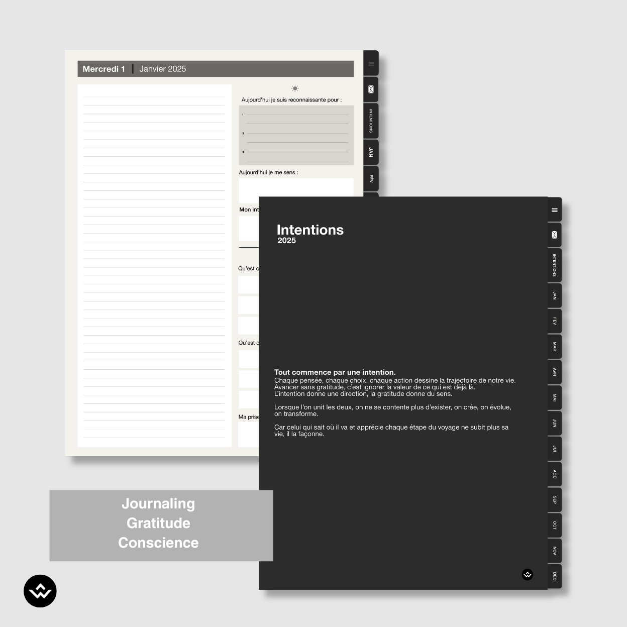 Tout commence par une intention. Chaque pensée, chaque choix, chaque action façonnent votre trajectoire. Mais avancer sans gratitude, c’est ignorer la richesse de l’instant présent. Intentions 2025 est un journal digital conçu pour vous accompagner tout au long de l’année, en alliant réflexion, gratitude et alignement personnel.